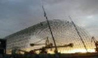 We are specialized in designing, manufacturing and prefabricating kinds of steel structures, space frames, pipe-trusses, dormers, membrane structures, also we supply with the accosseries such as windows and doors, roofs and walls sandwich. We qualification of Steel Structure design Grade B, and Special Qualification of Steel Structure Construction Grade A. Detail : 1. Certificate: ISO14001:2004, ISO9001: 2008, OHSAS1800 2. Features: fast and flexible to assemble, secure and safe; thermal and noise insulation; water proof and fire prevention. 3. Cost-effective: fast and easy installation greatly shorten the construction time which reduce the costs; 4. Durability: the whole structure is easy in maintenance, and can be used for more than 50years 5. Perfect design: perfect design completely avoids leaks and water seepage. Meanwhile, it's also in line with the national level of fire prevention 6. Carrying capacity: with large span can withstands strong wind and seismic impacts and bears heavy loads 7.The scope of application: widely used in kinds of industrial plants, shopping malls, exhibition halls, markets, warehouses, garages, sports venues, workshops, stations, roof constructions, office -buildings, convention centres, stadiums, commercial centres, civil and public buildings etc. 8.Introduction about ourself : we can supply complete set of service from design ,manufacture ,installation to technical guidance ,etc . We are very professional and experienced ,as we have built long termrelationship with many countries ,such as Russia, Germany, Philipine,Australia, Saudi Arabia etc If you really interested , plssend usthe following information: 1.Dimension: length, width, height, eave height, roof pitch, etc 2.Doors and windows: dimension, quantity,where to put them 3.Local climate: wind speed, snow load, etc 4.Insulation material :sandwich panel or steel sheet 5.Crane beam: do you need crane beam inside the steel structure? 6.Is there any material that are not allowed to import into the country where the structure is planning to use? 7.If you have other requirements, such as fire proofing, isolated roof,etc ,pls also inform us. 8.It's better if you have your own drawings or pictures. Pls send them to us. The competitive price, on time delivey and best service is our goal. The following three projectswere completedtwo years ago. They are all steel structure workshop,easy and fast to install ,fire and water prevention ,use life more than 50years,and cost is much lower than concrete building